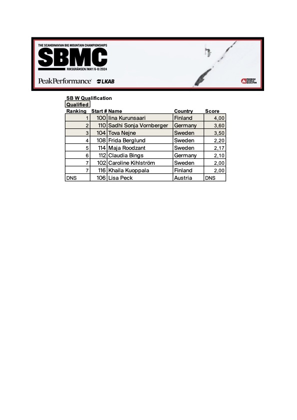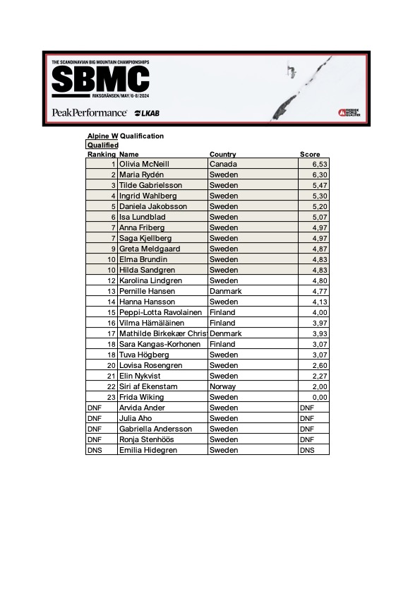 Ingrid Wahlberg och Olivia McNiell kör båda stabilt och visar vad tävlingen handlar om. En 18-åring från Åre och en FWT-åkare som gör upp med samma förutsättningar. Även Maria Rydén ställer ned ett riktigt fint åk och får med sig både öga och kvalklippa.