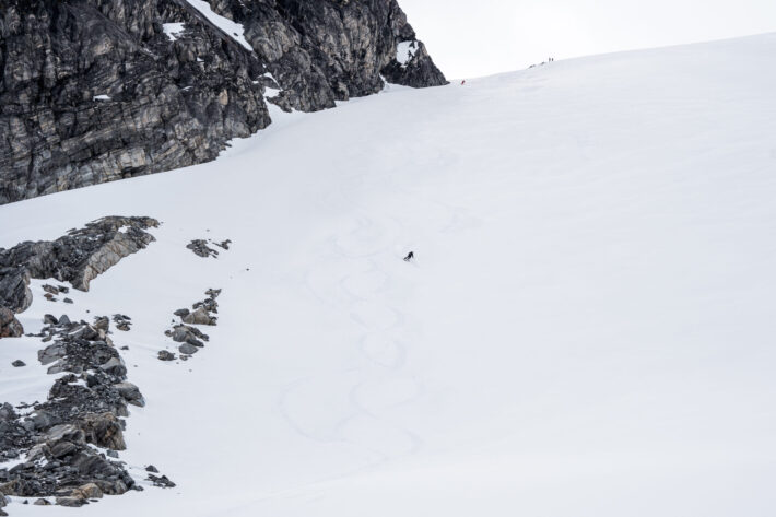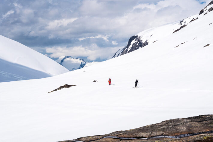 Johan Andersson, från ovan nämnda researrangör, är ett välbekant ansikte i Stryn då han tillbringat oräkneliga somrar i området. För närvarande diskuterar han eventuella linjeval och alternativ på fjället tillsammans med Nina Lensebakken som arbetar som anläggningschef på Stryn Sommerski, vilket känns som ett tryggt radarpar att ha med sig.