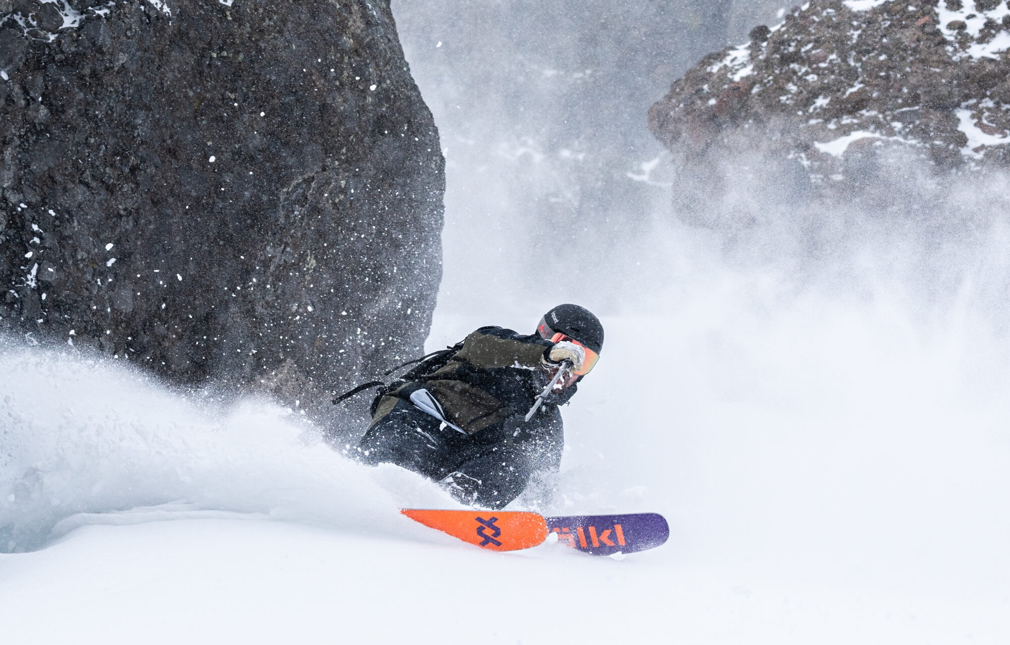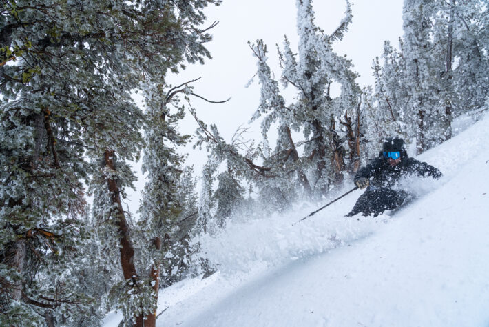 De amerikanska vädergudarna gillar inte oss svenskar, tydligen. Vi kör nästan rakt söderut från South Lake Tahoe mot Kirkwood, och regnet slår återigen mot framrutan. Vi kör av från väg 88, in på väg 89 och skrattar högt på den bara asfaltsvägen när vi kör förbi checkpointen för snökedjor. Orten må vara mindre och mer kompakt än South Lake Tahoe, men Kirkwood känns mer populär på något sätt. Iallafall för tillfället. Ryktet säger att det är mer och bättre snö här, oftast. Med sin högre bashöjd på 2377 meter över havet gentemot South Lake Tahoes 2029, och 15 liftar med 86 nedfarter, är även detta en respektabel skidort. Kirkwood är placerat på ena sidan av en stor bowl med några fina möjligheter för offpistskidåkning. Något som Freeride World Tour även utnyttjat.