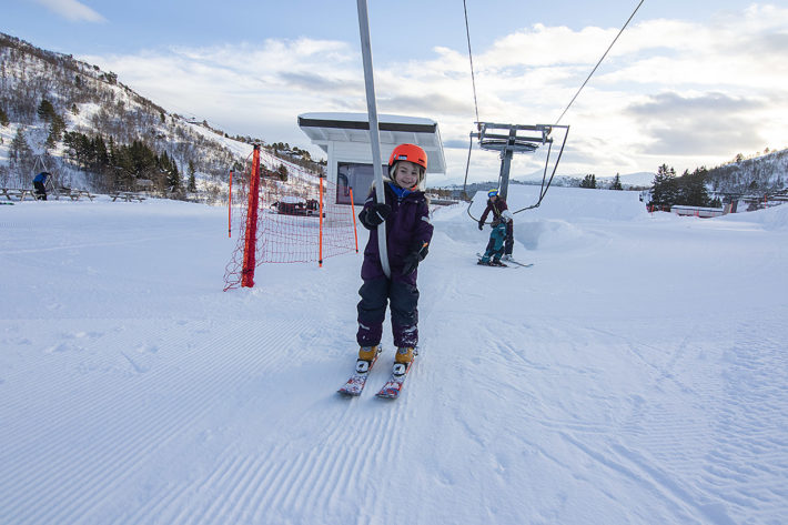 Även Meja, vår dotter på snart fem och ett halvt kan anses som nybörjare. Dagarna innan vi åkte till Stranda lärde hon sig förvisso att stå stabilt på sina skidor i Bollenkollen utanför Göteborg, men varken svängarna eller stoppsladdarna satt särskilt bra. Redan under de första dagarna i barnbacken lärde sig både Meja och Leo att svänga, stanna och ta barnknappliften själva.