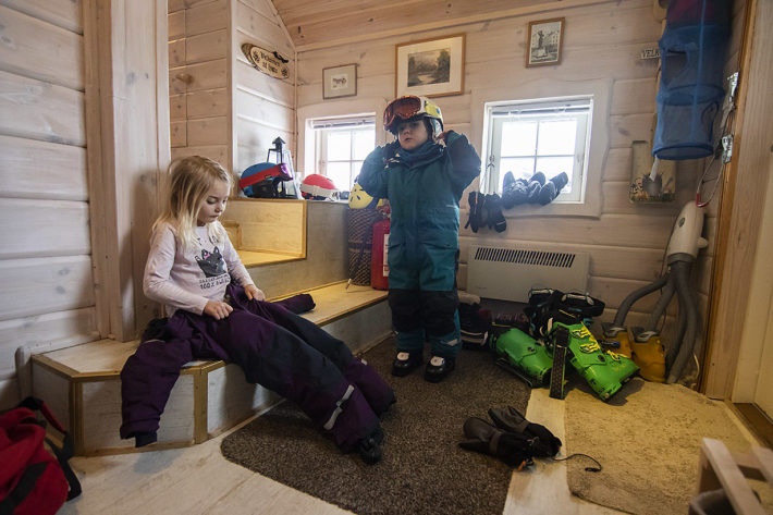 Åter till det här med boendet. Det visade sig, precis som min fru visste redan hemma i Mölndal, att våra barn varken ville eller orkade åka skidor från tio till fyra. Det är förmodligen inte så många fyra- och femåringar som gör det. Jag förstod alltså ganska snabbt fördelarna med att ha en stuga precis vid pisten. Pauser, fika, vila, lunch, toalettbesök. Allt kunde göras i den mysiga och charmiga stugan istället för i en värmestuga. Så enkelt. Så smidigt. Så värt de extra pengarna.
