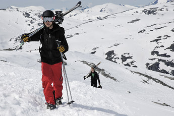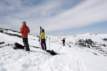 Tips 3: Ta med ett par breda, nyvallade skidor så flyter du bra på den lite grövre och trögare sommarsnön.