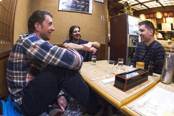 Till slut var vi framme i Nozawa där Linus och hotellföreståndaren mötte upp med en jeep. Färden gick i hisnande fart längs krokiga backar och gränder och snart nog installerade vi oss på Kiriya Ryokan. Ett traditionellt japanskt hotell, där man sover på madrasser på golvet. Efter en snabb middag, uppackning av skidorna och en koll på väderprognosen fördelade vi oss över golvet, svepte in oss i tjocka dunbolster och drömde snart om bottenlöst japanskt puder.