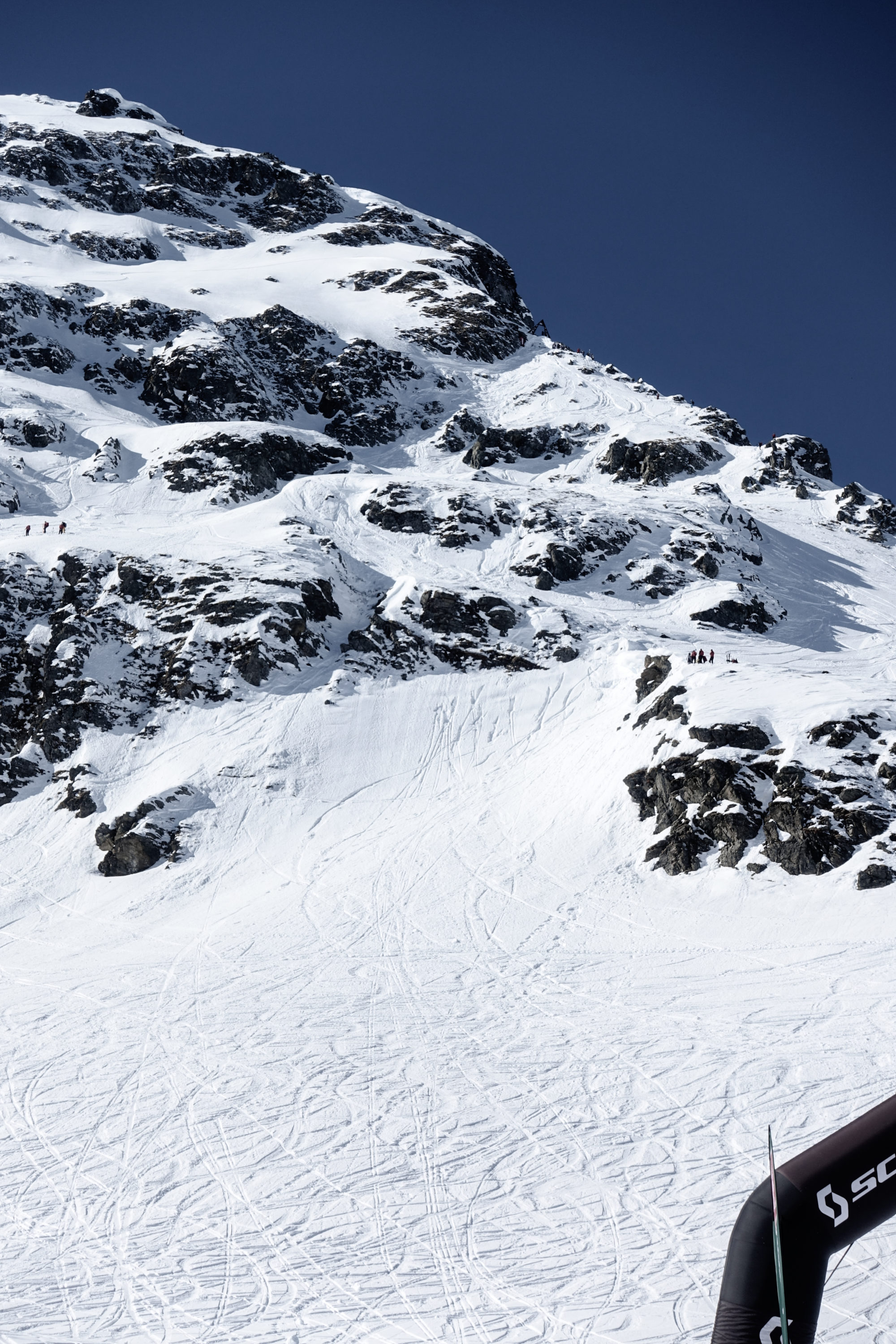 En okänd fransman tog ett drop, fick framåtlut men höll sig på skidorna. Det kanske låter lagom och lyckligt, om det inte vore för den massiva klippväggen som han närmade sig med en olustig fart. Pang sa det, och som en ragdoll kastades hans arma kropp upp i luften från smällen av bergsväggen inför en knäpptyst publik. Han tumlade över klippor och ner i botten, låg still ett tag, och reste sig sedan upp och åkte ner på en skida. Tävlingen rullar vidare, men med en aningen dystare och mer spänd stämning.