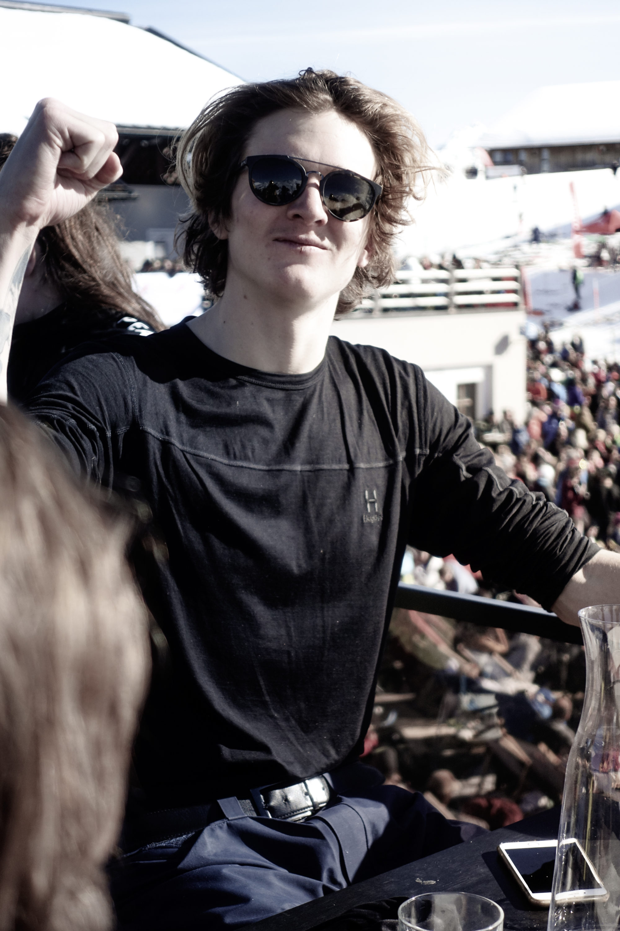 Carl Renvall letade sig ner i facet och droppade in i dödsdömda coluirer med bravur. Ett tag svalde nog halva publiken tungan när han, tre meter efter att ha landat sitt drop in i en ränna, bokstavligt talat slickar en klippa på hans högra sida för att få rätt kurs ut och således överleva åket: