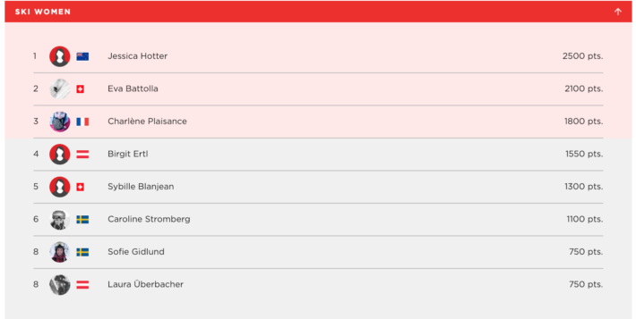 Någon som det även ser extremt ljust ut för nu är den gamla FWT-åkaren Carl Renvall från Verbier, fast med svensktalande föräldrar. Med en pallplacering på senaste tävlingen följt av en vinst i Silvretta bäddar upp det riktigt fint för honom inför de två sista tävlingarna. Carl, som tagit en paus från tävlandet under förra året visar på rutin och hög potential, och det är ingen vild gissning att han kanske kan klättra upp till världstouren under detta år.