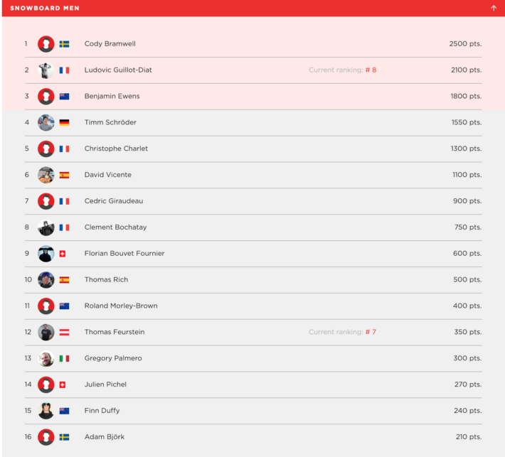 Efter en avslutad och lyckad tävling i alla aspekter kan vi konstatera att det här med att “jinxa” något eller någon faktiskt inte är så farligt som han tror. Cody var orolig för att bli just jinxad på sin pallplacering, men i den verkliga världen visar det sig att man inte behöver vara orolig för den stora stygga jinxen, då Cody slutade som just 1:a på tävlingen. I dagsläget sitter han nu inne på två stycken förstaplaceringar och en fjärdeplats. Det är nästan så att man vågar gissa vem som blir nästa svensk in på världstouren, men bara nästan. Vad vi däremot kan konstatera är att om resten av tävlingarna blir inställda, så kommer Cody att lägga linjer likt Travis Rice med en FWT-bib fladdrandes i vinden år 2020.