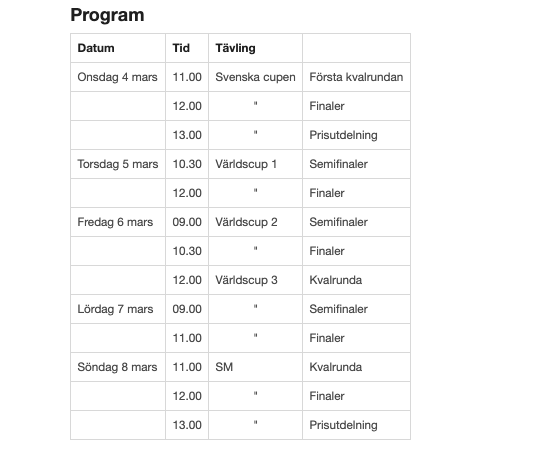 – Alla i lagen är taggade och ser fram emot tävlingarna. Det är alltid extra kul att tävla på hemmaplan, så vi håller tummarna för att det kommer massor av publik för att stötta oss på plats, säger förbundskapten Daniel Andersson.