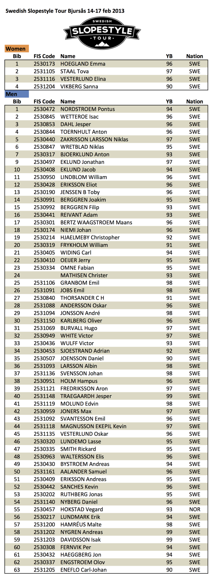 På fredag körs kvalet dit 67 åkare, 63 killar och 4 tjejer är anmälda. Inga Tolocka, som var ensam i tjejklassen vid första deltävlingen i Vännäs, kommer dock inte till start i Bjursås då hon redan säkrat en finalplats. Inte heller ledaren i killklassen, Jesper Tjäder, är anmäld till den andra av totalt tre kvaltvälingar i touren. Jesper är i viloläge då han stukade foten på världscupkvalet i Schweiz nyligen. Tvåan och trean i Vännäs, norrmannen Vegard Hokstad och Carl Widing, får istället ses som favoriter i Bjursås.