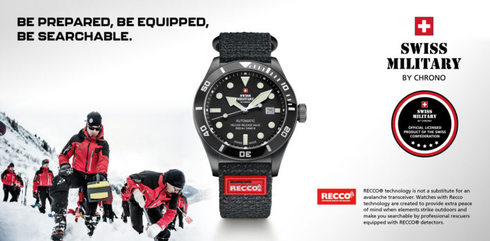Swiss Military by Chrono har inlett ett samarbete med svenska Recco. Nu finns tre nya klockmodeller att välja mellan som har ett klockarmband med integrerad Recco-reflektor. Klockorna säljs hos Stjärnurmakarna, i butik och i deras webbshop.