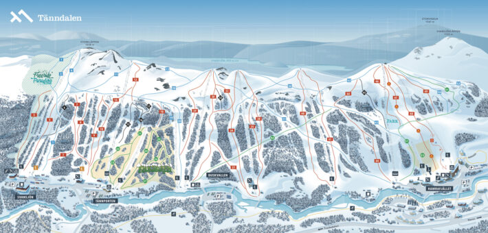 Tänndalen är fullproppad med varierande röda pister som är väldigt bra preparerade och vecka 6 är gästerna så få att inget är uppåkt ens vid stängningsdags.