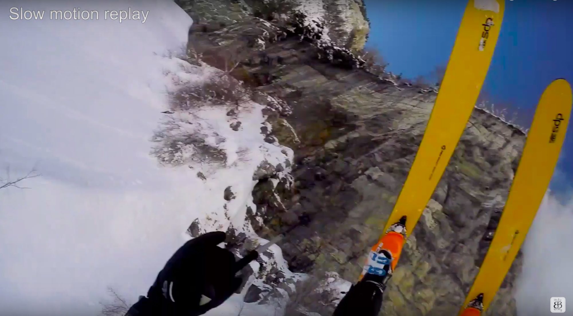 ”Mirakulöst så hade jag inte ens ett blåmärke! Jag hade sönder mycket prylar inklusive hjälmen. Tack till Matt för hjälpen att gräva i nästan fem timmar. Jag hittade min borttappade skida och åkte ner.”