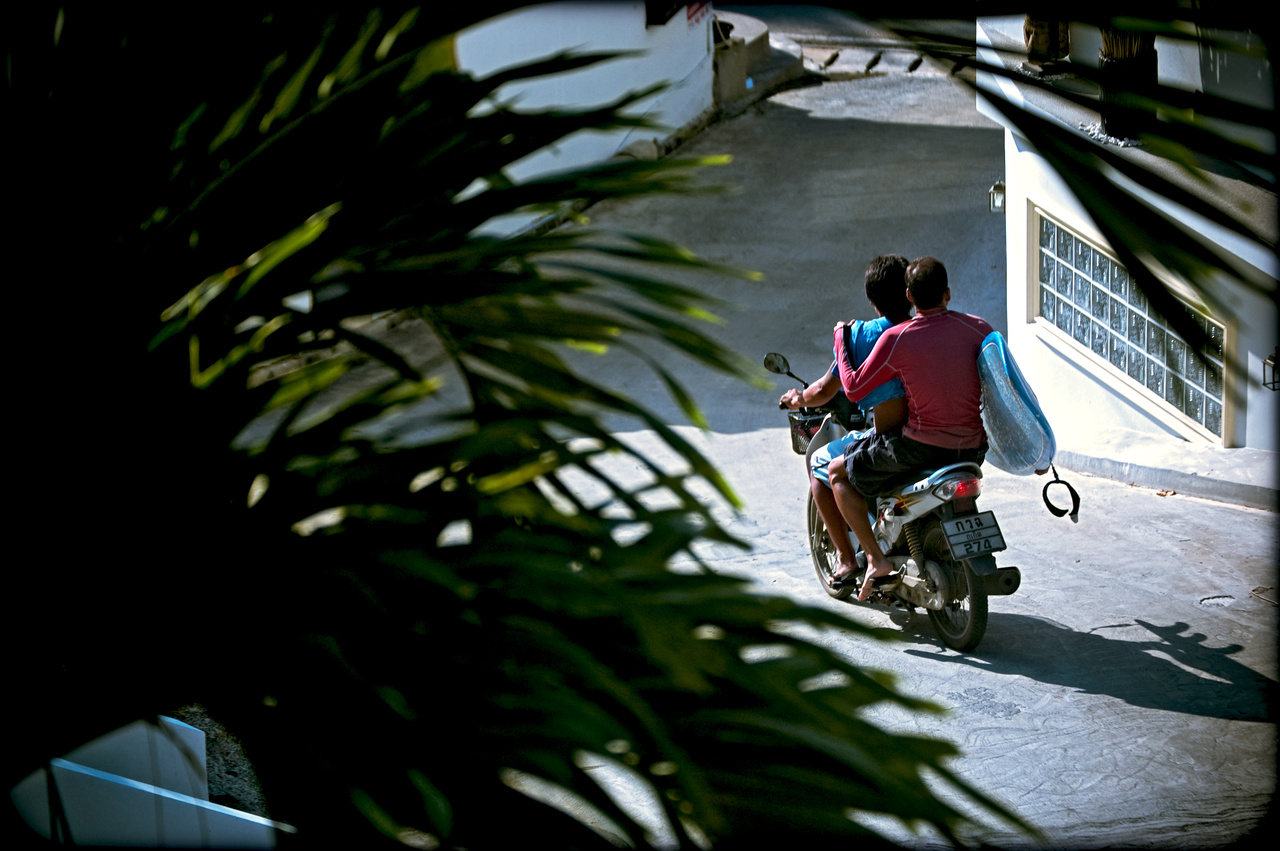 Vägen till surfspotet är speciell. Vi sitter tre stycken på en supertrimmad moped. En svensk turist, en hotellägare med en ömmande rygg samt, en för mig, okänd yngre chaufför. Med oss har vi tre surfbrädor som vi helt trafiksäkert har under armarna. I en uppförsbacke får föraren plötsligt för sig att han ska ha en ciggarett. Han rotar fram paketet, tänder en cigg och vi vinglar till. Han skrattar – jag skrattar inte. Vi har tydligen olika syn på vad som är roligt.