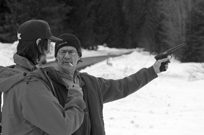 Mannen som håller i pistolen är våran hyresvärd, mekaniker, meteorolog, problemlösare och spirituell rådgivare. Hans namn är Bruce och detta är en sann historia: Bruce studerade till klassisk kompositör på Julliard. Han tog examen och bestämde att han inte ville komponera symfonier. Han började plugga juridik på Lewis & Clark, tog examen men bestämde sig för att han inte ville jobba med det. Bruce flyttade till Alaska, köpte en fiskebåt och har nu fiskat i 35 år. Han är prototypen av en Alaska-bo och jag tror Alaska är det enda stället som kan hushålla honom.