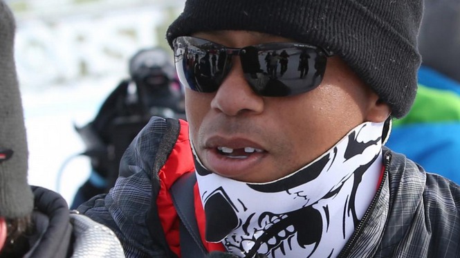 Tiger Woods får tanden utslagen i skidbacken