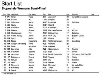 Damernas slopestyle-semifinal avgörs under morgondagen där en av de deltagande är svenska Emma Dahlström, som vi hade en intervju med i början av veckan. I semifinalen ställs Emma bland annat mot Anna Segal och Maude Raymond.