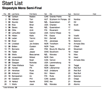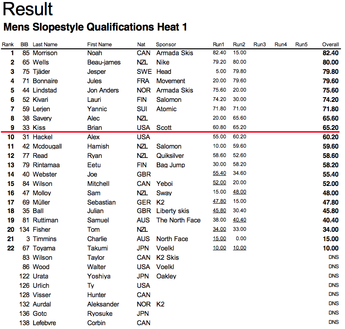 En välshapad park, strålande sol och nästintill vindstilla var förutsättningarna när slopestyle-kvalet under The North Face Freeski Open avgjordes. 50 åkare gjorde upp om 17 stycken platser till semifinalen där ett gäng tunga åkare som Russ Henshaw, Phil Casabon, Jossi Wells och Elias Ambühl redan väntar.