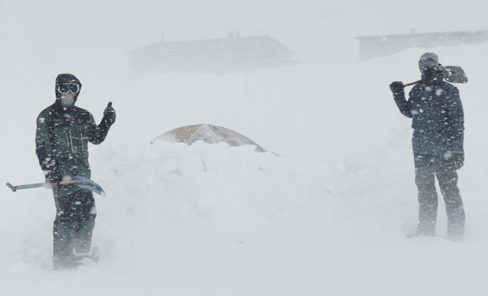 – Namnet kom vi på efteråt, haha. Det framgår nog inte i filmen hur jävla mycket det blåste. Första dagarna på Helags var helt fantastiska, sen slog det till. Det blåste så mycket att filmaren Elias drönare inte kunde flyga tillbaka själv utan vi fick åka efter drönare för att få tillbaka den, istället för tvärtom.. haha.