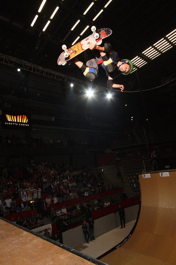Allt startar med att kvällens speakers, de två gamla världsmästarna och världsrekordhållarna Andreas Lindqvist och Stefan ”Lillis” Åkesson värmer upp publiken med diverse flatlandtrick på BMX och Freestyleskateboard i botten på rampen. Rampen som för övrigt fraktades hit från tyskland enbart för detta eventets skull. Nästa publikuppvärmare var allt annat än flatland, inlinesbröderna Eito och Takeshi Yasutoko. Jag är övertygad om att även de största inlinesmotståndarna hade blivit omvända om de hade fått chansen möta dessa två hårt rippande, superödmjuka och skitglada japaner. Det är svårt att beskriva hur det är att se dem åka, men man skulle kunna sammanfatta det med att vidvinkeln inte räckte till när man skulle fota dem. Eller att om det inte hade varit för att de har så sjukt bra koll, så hade de slagit ihjäl sig för längesen…