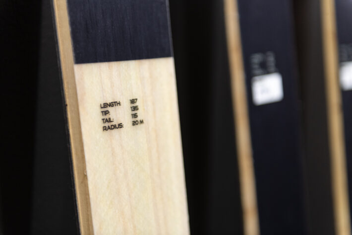 På skidornas sidewall, det vill säga det du ser mellan belaget och ovansidan, så ser du rätt in i träkärnan. Vanligtvis så är kärnan inkapslad med någon typ av plast för att ingen fukt ska ta sig in i skidans innanmäte. Men på Gävle Skidfabrik har man valt bort plasten och låter istället behandla skidans sidor med linolja vilket ska ge ett fullgott skydd mot väta.