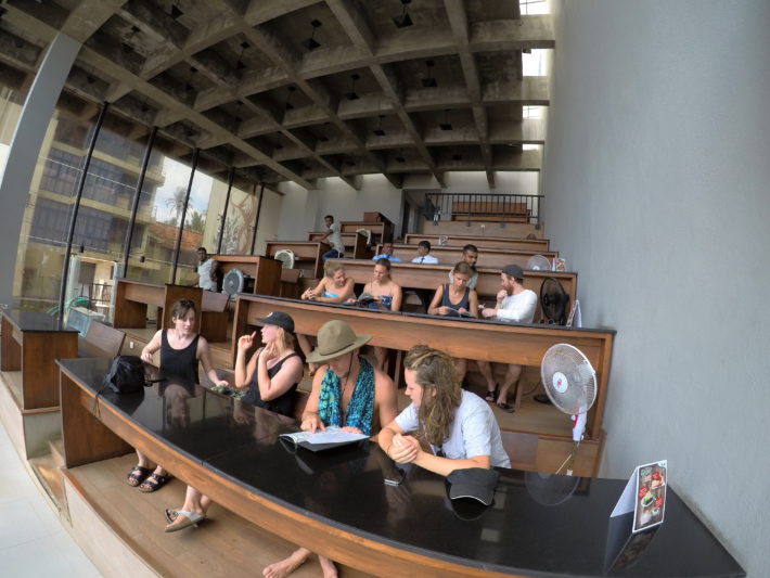 På kvällen sänker sig solen i den varma tropiska kvällen. Vågorna från havet rullar in med sitt konstanta sövande ljud. Några aport tjattrar ett par hustak bort. På taket jämte IOSC:s byggnad ligger en kattfamilj och slumrar, en kattmamma och två små – just nu – väldigt trötta ungar. I luften omkring oss här upp på terassen syns flygande små lyktor:
