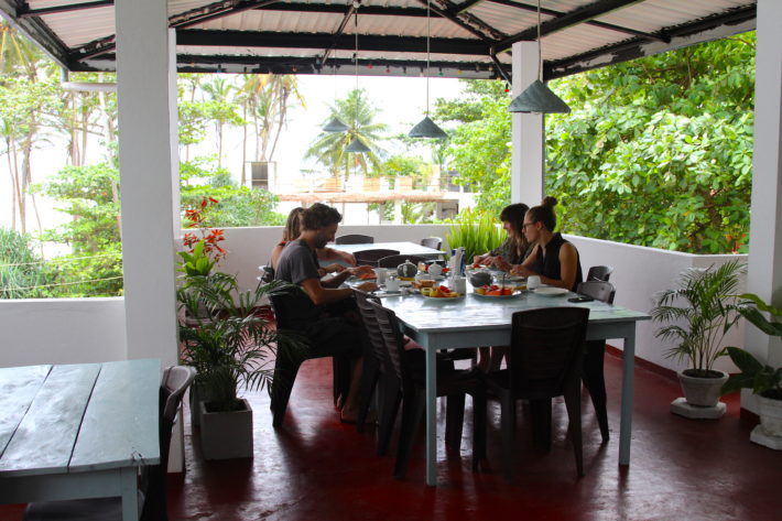 Vi är ett tiotal i sällskapet som sitter och jäser och småpratar efter den nyss avslutade middagen med stekt ris, räkor i ”deviled” sås och grönsaker. Den världstoursaktuella snowboardåkaren Christoffer Granbom är här och surfar i ett par månader, Janette Hargin – den forna FWT-mästaren – har också åkt till Sri Lanka för en veckas surfsemester.