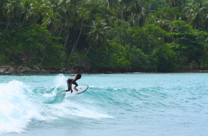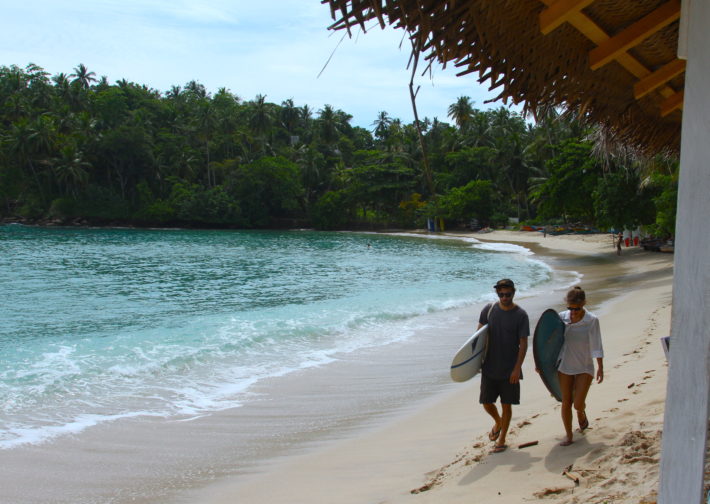 ”Våtdräkt är precis lika obehövligt som tre ton skidutrustning med lavinkit, kläder, pjäxor. På surfresa till Sri Lanka kan du packa ett handbagage och sedan ha en tropisk surf getaway i en eller ett par veckor.”