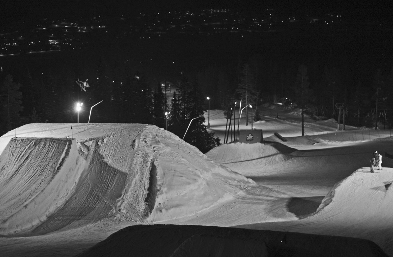 Jag knäpper pjäxorna och glider bort mot backe 68 för att komma över till Fageråsen. Till vänster långt upp på kalfjället är sex pistmaskiner i full färd med att skyva ner snö till ett gigantisk hopp. Det är förberedelser för Jon Olsson Super Sessions. Byggmästare är Jon Olsson själv tillsammans med Trysilfjällets parkansvarige shapare Claes Högström från Karlstad. På andra sidan fjället, nere i Parken vid Knetta-liften, står det andra hoppet i princip redan klart för tävlingen. ”The Super Combo Kicker” och ”The Trick Buster” heter elementen i Trysil som bland andra Jon Olsson, Andreas Håtveit, PK Hunder, TJ Schiller och Simon Dumont skall slänga sig ut för. Jon Olssons event är en skarp kontrast mot den i övrigt rådande familjestämningen.