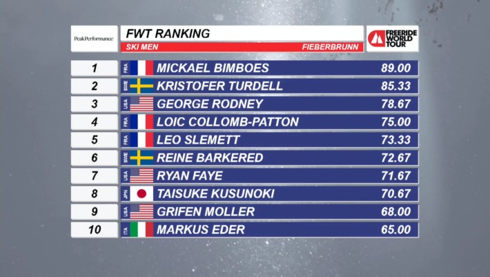 Det svenska stjärnskottet Kristofer Turdell briljerade åter igen med att gå störst på Wildseeloder. En kreativ linje till skidåkarens höger, där han började med att introducera en ny klippa som han sedan följde upp med ett enormt dubbel dropp. Rutinerad som han blivit ställde han ned ett säkert åk och gick i mål som ledare där han fick sitta länge innan Bimboe tog över ledningen.