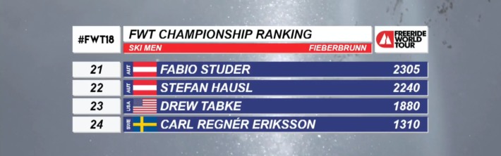 Fransmannen Mickael Bimboe vann dagens tävling i Fieberbrunn när han genomförde ett stunt och hoppade över bottenravinen istället för ned i den som de övriga tävlande gjorde. Värt att nämna är att det aldrig genomförts tidigare och då har man tävlat på detta berg i över 10 år.