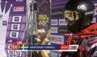 Kristoffer Turdell gick skidåkarens höger ut från den enorma Swatch-klockan som utgjorde startgate. I den övre delen av tävlingsfacet hade Turdell fokus – stort drop, hög fart och samtidigt till synes helt och hållet kontrollerade svängar. I den nedre delen letade han sin in i den lilla ravinen och bjöd på två mindre flygturer. Åket genererade 91 poäng och 27-åringen från Gällivare kunde nöjt konstatera att ingen av de övriga i fältet kunde matcha det denna dag. Turdell ligger efter tävlingen i Fieberbrunn etta på den totala rankingen med 4 700 poäng.