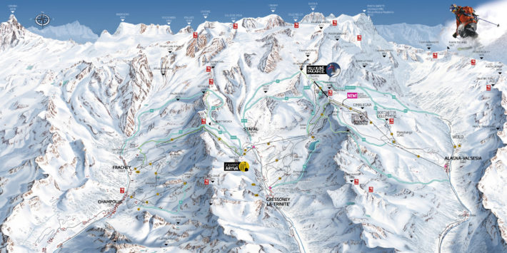 Alagna, Champoluc och Gressoney är skidorterna under flaggen Monterosa Ski. Förra säsongen var snöfattig i italienska Monterosa, men i år verkar lyckan ha vänt.