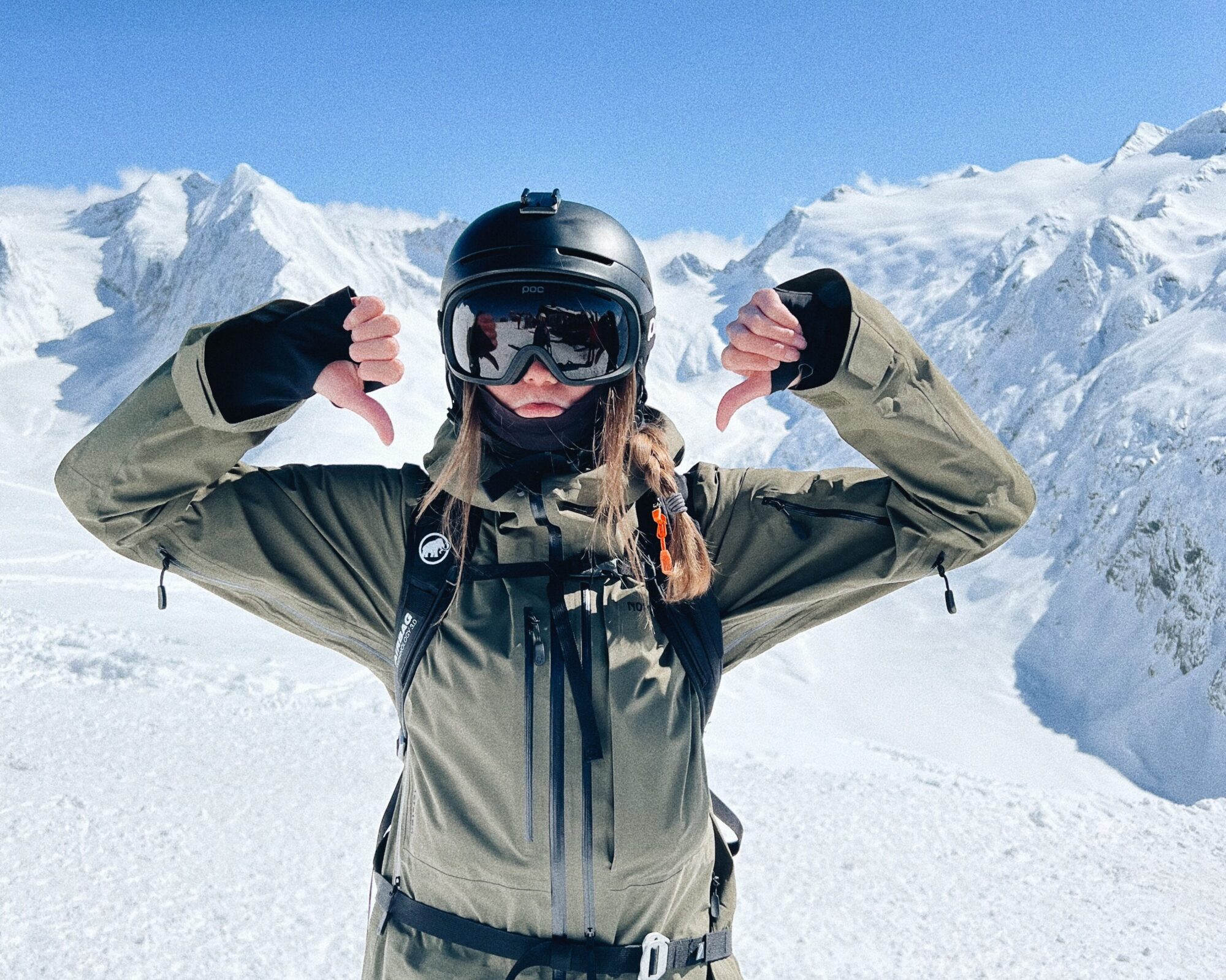 Petra hade ett riktigt bra åk på gång. Med full kareta far hon ut ur startgaten mot den högra delen av facet. Hon drog av ett snyggt första drop för att sedan ta sig ned mot den centrala rännan. Mot sista dropet, ovanför den utsatta no-fall zonen, blev hon lite desorienterad men hittade tur nog tillbaka. Hon tog sig in mot en stor sista klippa, riktade skidorna och stompade som om hon inte hade gjort något annat. Med åket avklarat hade hon bara en raksträcka kvar innan målfållan. Då händer det som inte får hända. Ena skidan dyker och fastnar i den opålitliga snön och hon faller. Snacka om att ”snubbla på mållinjen”.