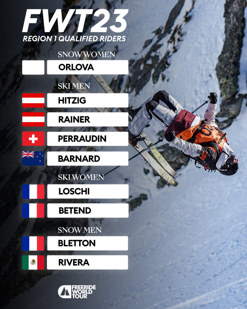 Därmed kvalade följande åkare vidare till Freeride World Tour 2023