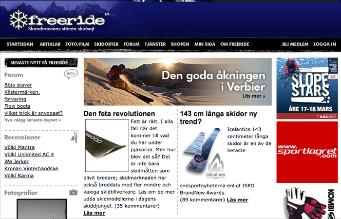 Finns det någon hemsida man spenderat mer tid på än Facebook så skulle det väl vara Freeride. Jag har haft många glada samhälls- och svenskalektioner på Freerides forum genom åren. Varit en prylkåt tonåring och läst recensioner om vilka Oakley-linser som passade bäst soliga dagar i Alperna för att sen besviket kunna ladda upp lite bilder från de 70 svinkalla och molniga åkdagar man lyckades skrapa ihop i Sälenfjällen.