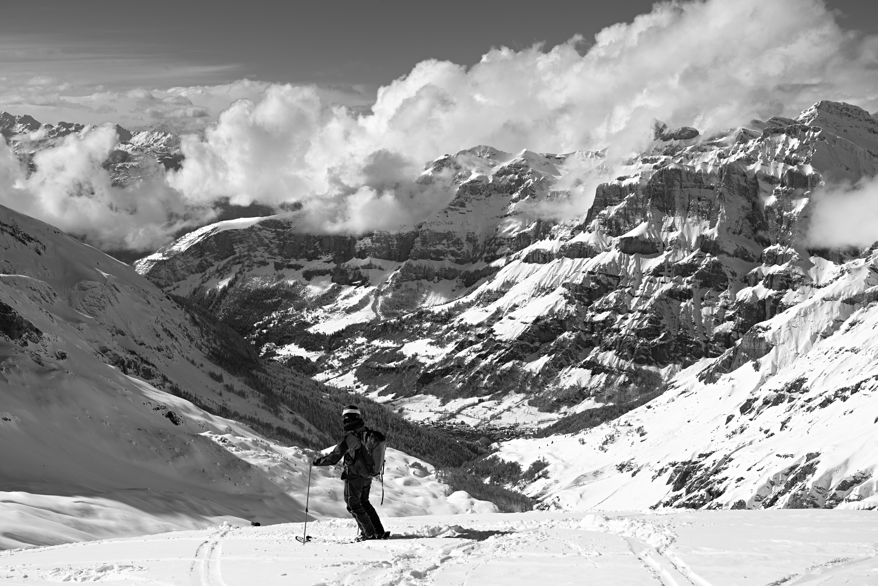 Efter att vi slitigt av stighudarna i klassiskt motljus och satt i oss en stödmacka, är det hög tid att rikta skidspetsarna nedåt mot Leukerbad. Men vart börjar vi? Smörgåsbordet är ju fullspäckat med 100% ekologiska möjligheter. Efter noggranna studier av fallinje, topografi, lutning på vinklar och solens position på himlavalvet, så faller valet på skiers left. Pudersvängar, krispig vit snö, som än upplevs som nyansen vitare på denna sida av Gitzifurggu, avverkas på löpande band och djupa skidåkardiskussioner med guiden Fabian varvas med hesa skratt. Vid en kortare samlingspaus för att sondera terrängen, eventuella terrängfällor och lavinrisker, så inser vi en sak. Förutom att det är alldeles tyst så är vi också helt ensamma. Ingen som tagit sig upp på Gitzifurggu har fortsatt ned på denna sida.