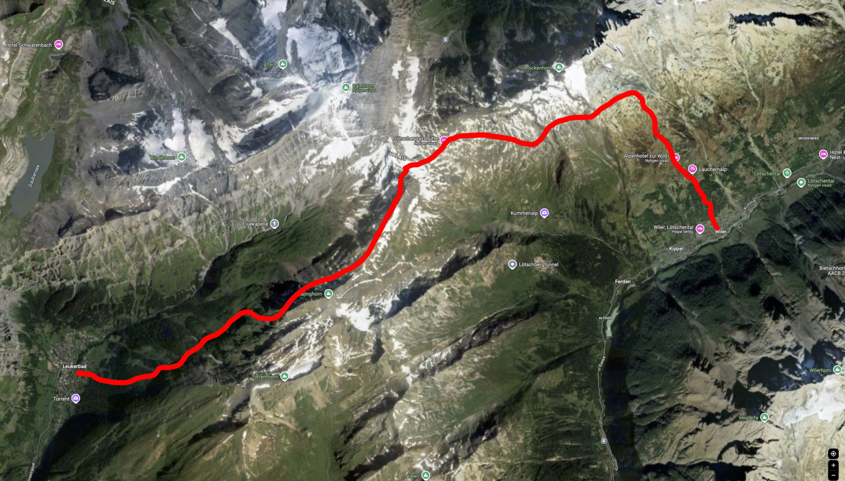 - Vi spenderade runt 6 timmar från liften i Lötschental till torget i Leukerbad. Det innefattade kaffepaus vid Lötschenpasshütte, intern systemrensing vid utedasset med utsikt, turen upp till Gitzifurggu och sedan hela vägen ned till Leukerbad.