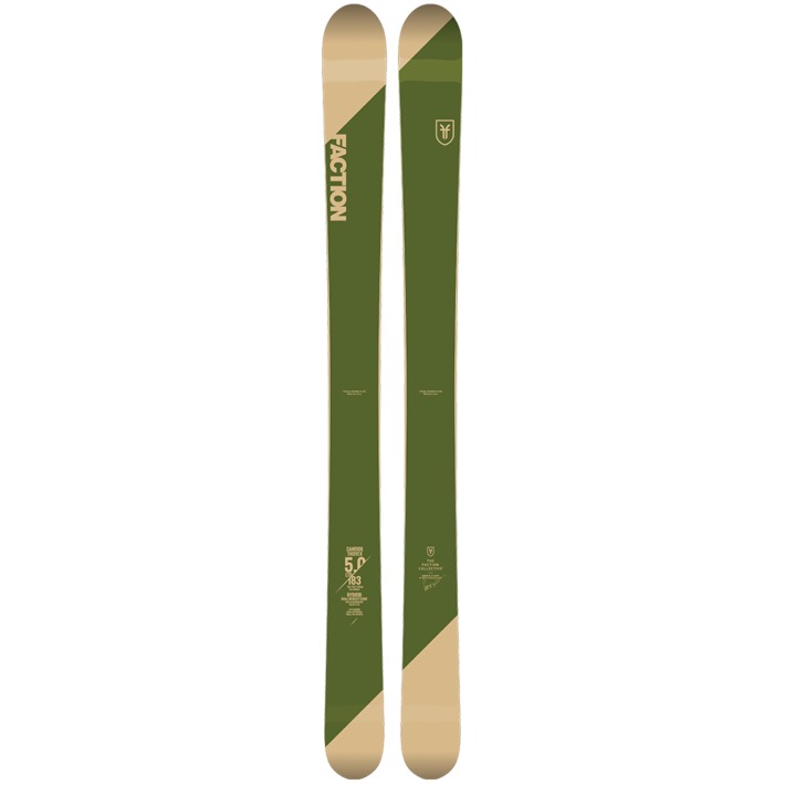 Om skidan: Skidan är den senaste i Candide Thovex serie Faction CT 5.0. Freeskier ger den 9.8/10 i kategorin flyt. En bred skida (122mm) men som ändå är lätt att svänga runt och leka med på grund av att kärnan betår av balsa, lin och poppel vilken gör den lätt och lyhörd. Serien CT 5.0 har en ”directional twin tip shape”— är platt under foten (flat rocker) och rocker i tip och tail, lite mindre rocker i tail för att öka stabiliteten vid hög fart. Kommer i endast en längd (183cm).