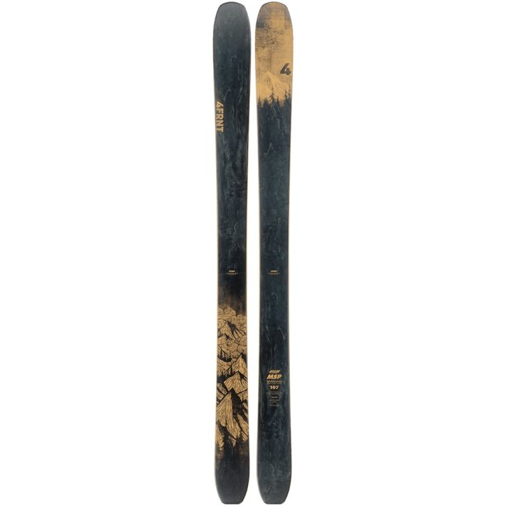 Om skidan: “Ski of the test!” säger Steve Karczewski i Freeskiers test. Modellen MSP är den första skidan 4FRNT skapade för 16 år sedan. Förra året då företaget firade 15 år gjorde de en skida som liknade deras första skida och den fick samma namn, MSP. Det blev en succé och i år har de skapat en bredare variant (107mm) som får högsta betyg bland våra Big Mountain skidor. Kärnan är byggd av poppel trä och skidan har en rocker-camber-rocker profil + neoprengummi i spetsen för en lätt, men styv och reaktiv skida.