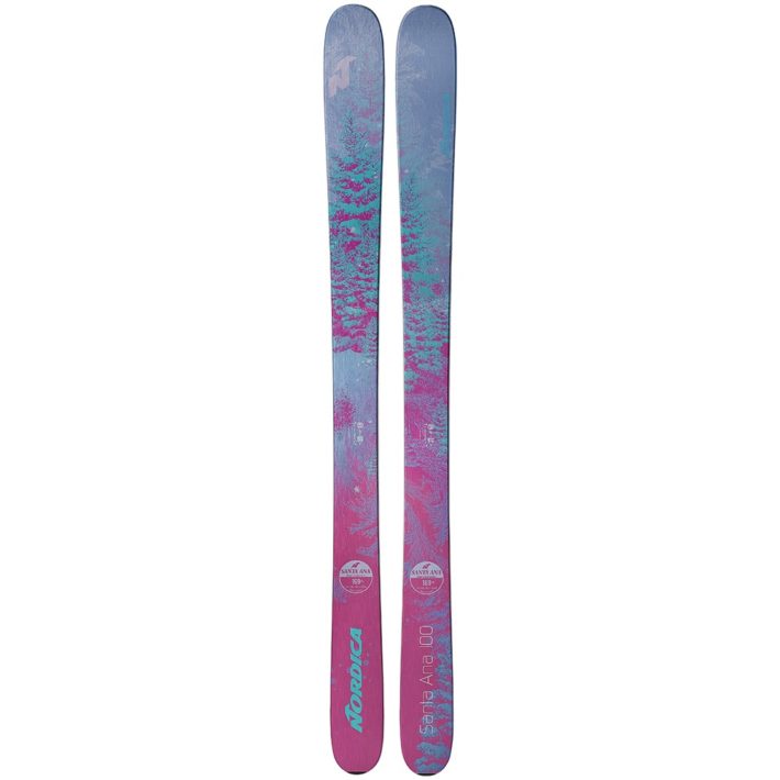 Om skidan: Årets modell av Santa Ana 100 skiljer sig från tidigare års då skidan har fått en ny kärna bestående av poppel, bok och balsaträ mellan två ark av titanalmetall. Maddy Jimerson säger i Freeskiers test att skidan är gym i alla förhållanden allt från pist, hårdpackat till bra flyt i puder.
