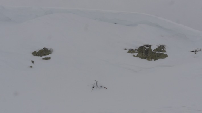 Åkarna har valt att hålla höjd i semifinalen från den första arenan och kommer därmed ut på toppen av facet och rekningen sker ovanifrån. Inga men. Toppturare #1, Olle Jonsson droppar ner i åket från hängdrivan mot ett vitt osynligt mjölktäcke, tyvärr med huvudet först. Laggen står inte pall för pressen. Toppturare #2, Linus Ohlsson lyckas dra några schyssta jibs ned för facet och efter 30 meters vertikal Small Mountain-åkning är han nere. Det är nu upp till Jesper Sandberg från Umeå att utmana honom för att få en åtråvärd finalplats. Jesper går på den största klippan man kan hitta och stompar sig genom åket som bara en norrlänning med dreads kan.