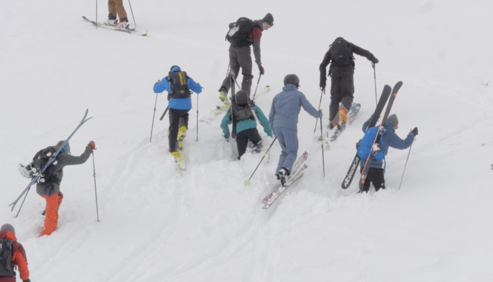 Första åkaren ut sätter nivån på resten av tävlingen: åk på bakstänkan och försök se snön under fötterna. Kriterierna för domarna lyder därefter att den som klarar av att komma ner med en rimlig position i skon får höga poäng. Det råder inga tvivel om att det är så långt ifrån ett ideellt tävlingsface i big mountain man kan komma. Åken är femtio meter, max. Lyckas man bara skena i trettio meter så har man tagit sig till botten och är därmed godkänd.
