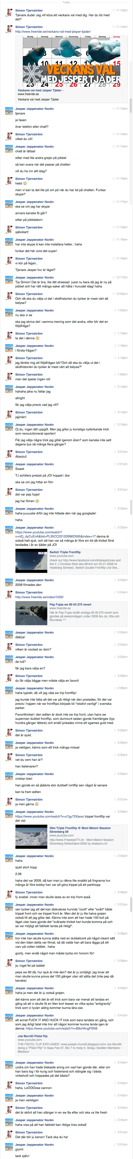– Favorittricket i den editen är dock inte sw trip front, utan hans sw superman dubbel frontflip, som Dumount (Simon Dumont reds anm) sedan gjorde framlänges (typ hundra gånger lättare) och endå lyckades vinna ett xgames guld med. Det känns verkligen som ett trick många missat. Cristian Bieri heter han och han gjorde en så j***vla stor dubbelfrontflip sen något år senare. Det var 2009, då kan man ju räkna lite snabbt på fingrarna hur många år före bobby han var att göra trippel på ett parkhopp. Sen tycker jag att det kan diskuteras huruvida ”coolt” eller ”svårt” både trippel front och sw trippel front är. Men det är ju lite halva grejen också till att jag gillar det. Känns inte som att han hade 100 koll på läget utan bara gjorde det ”svåraste tricket han kunde komma på och se var möjligt att faktiskt landa på riktigt”. Tror inte han skulle kunna ställa ned en dubbelcork på något cleant sätt vid den tiden detta var filmat, så då valde han att bara lägga på ett varv på volten istället. Haha.