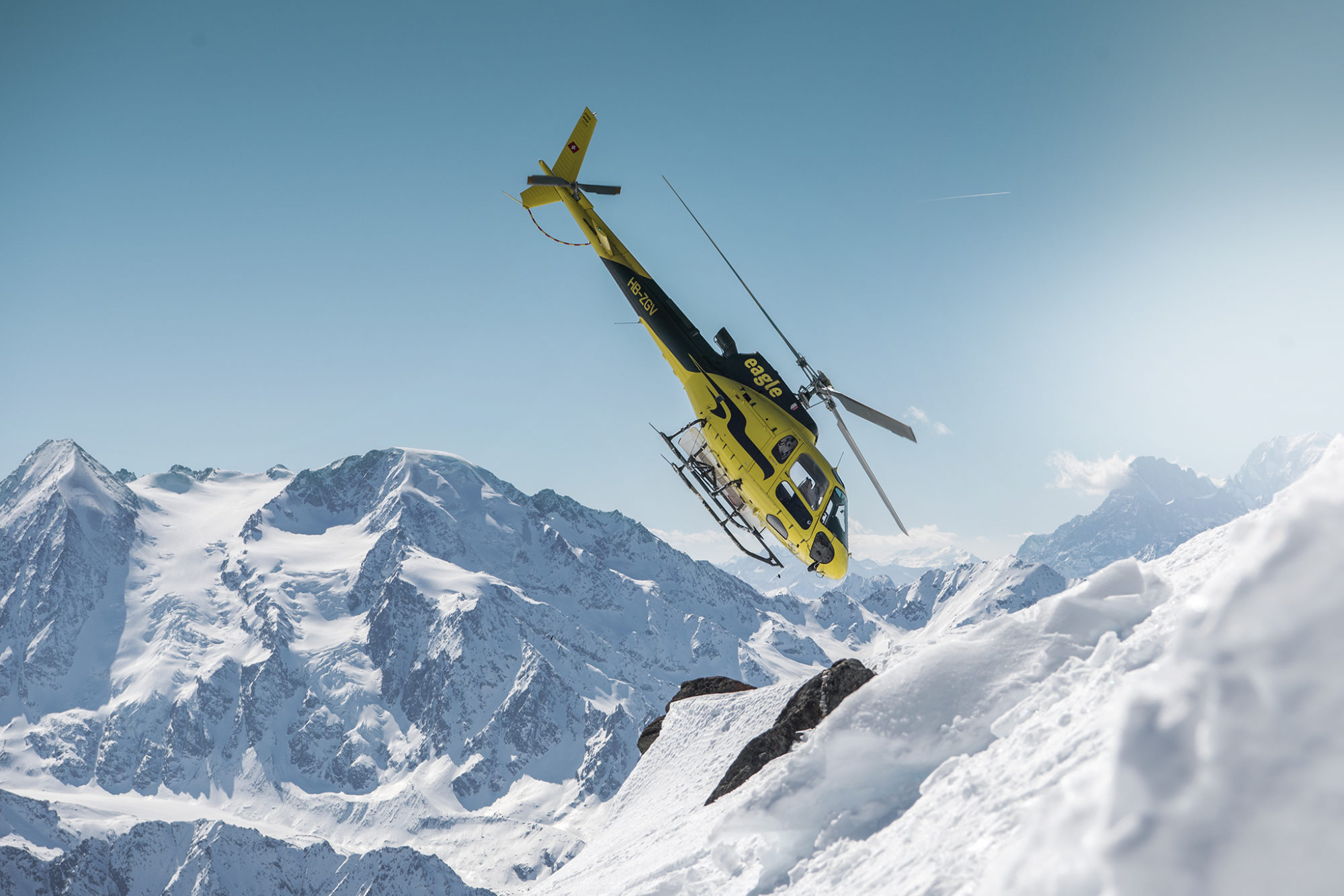 Trient glacier 3 300m – Ett bergsmassiv nära franska gränsen och Chamonix. Mycket spektakulära berg som ligger bakom Bruson. Kanske det mest populära berget att besöka med helikopter.