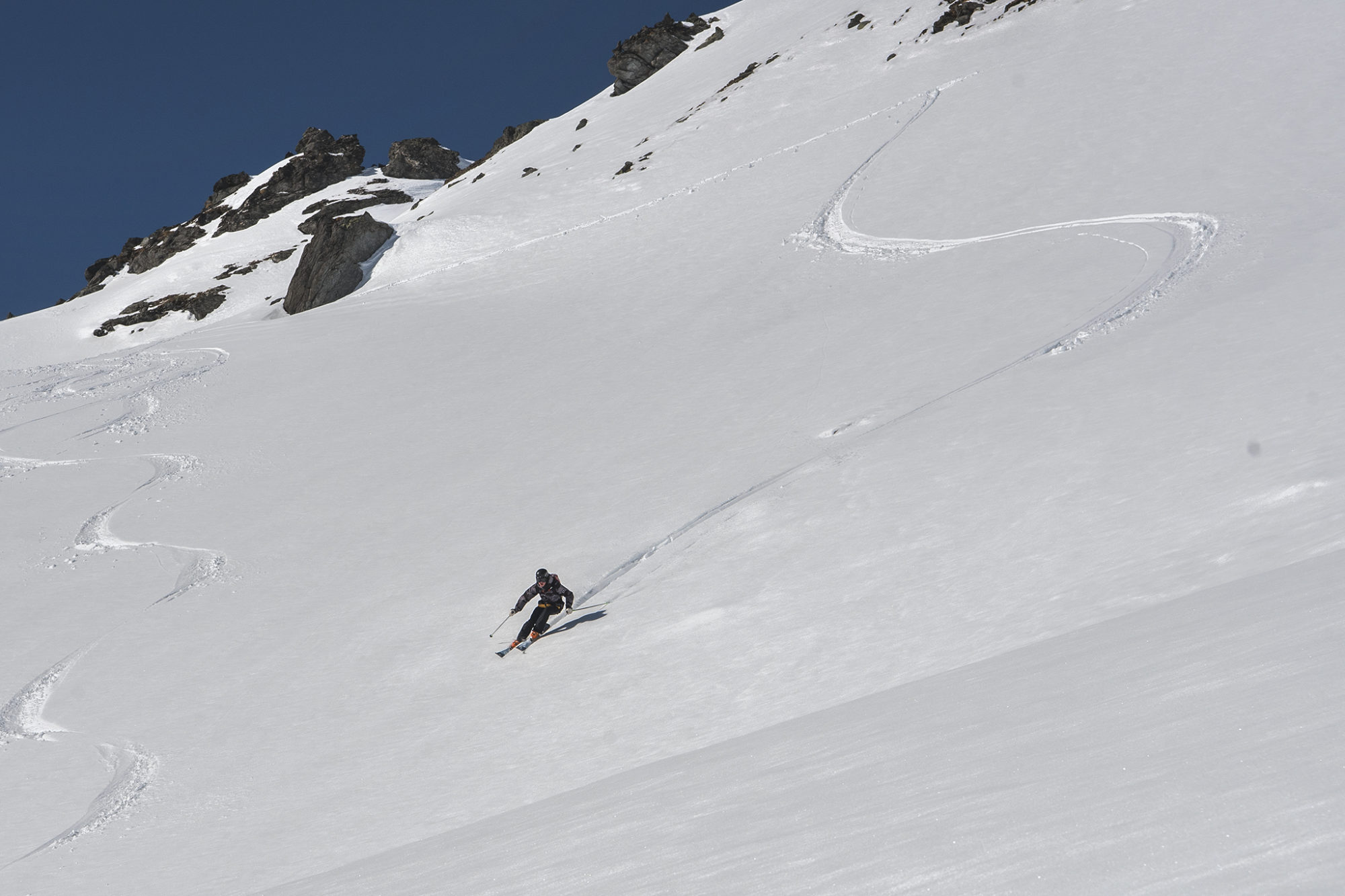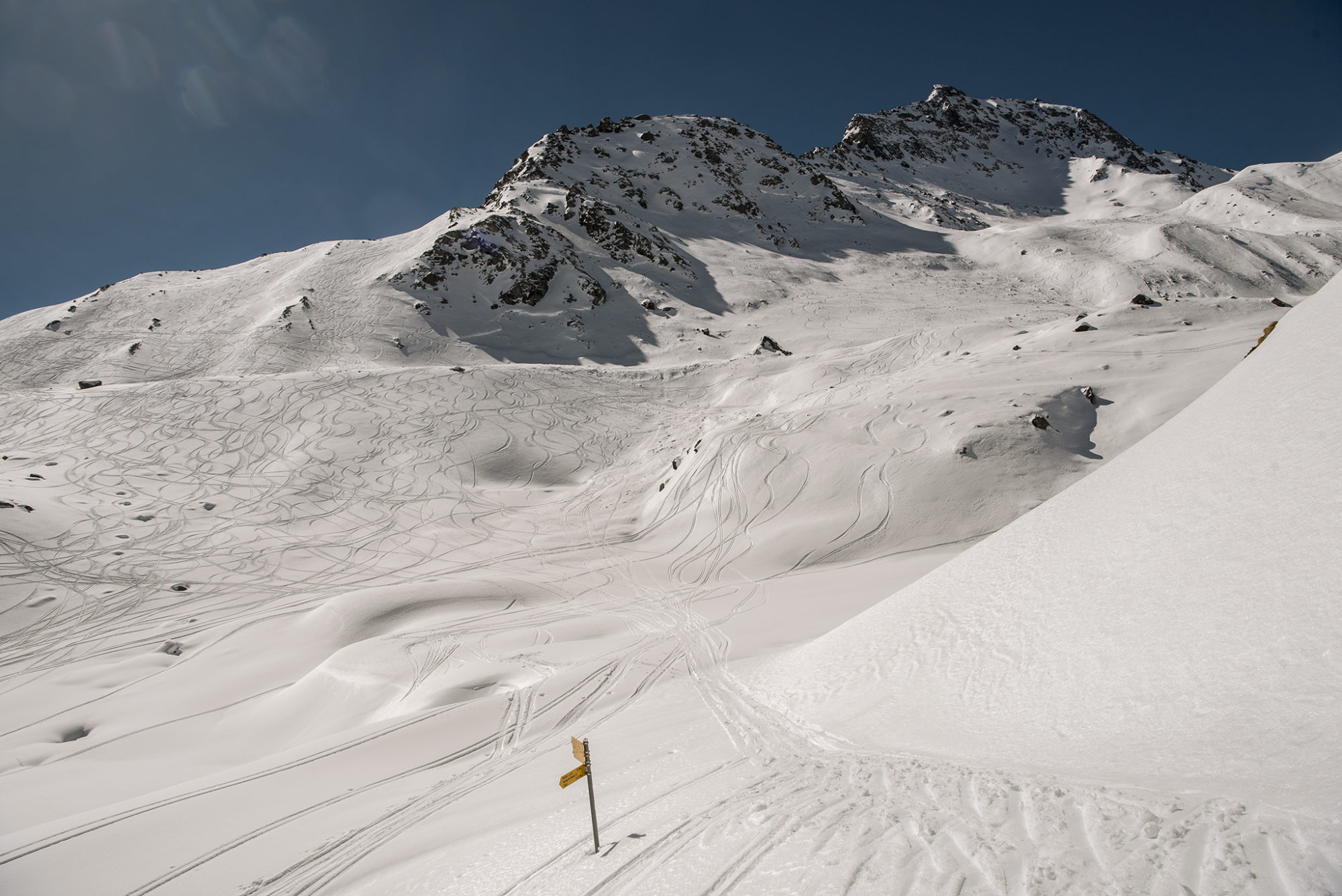 Vill man så kan man skråa vidare för att komma till något som bland svenska säsongare kallas för Avalanche City. Precis som namnet säger så ska man vara försiktig att ge sig ut där då man når ett väldig stort face som går rätt ner i en sjö. Men det ser ut att vara ett av Verbiers finaste åk. Hur som helst så valde vi att åka en av de mer klassiska rundorna i Col Ferret. Det fina med detta åk är att man allt som oftast är ganska ensam då de flesta väljer att ta sig ut i Verbiers vildmark via bergstationen av kabinbanan till Mont Fort.