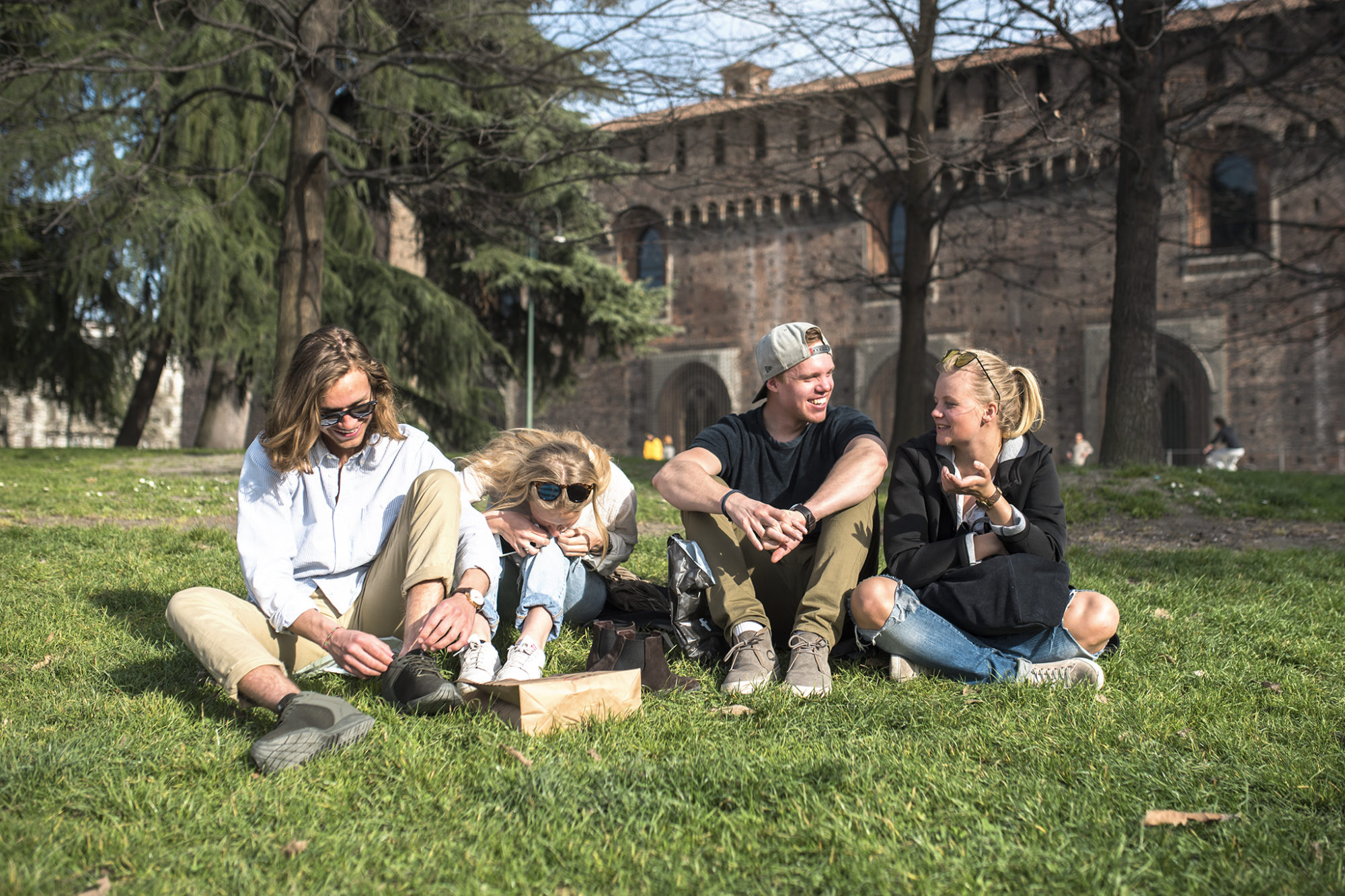 En timme tidigare – klockan 06.00. Efter en halvtimme hade vi sadlat om till shorts, T-shirts och solbrillor. Kanske inte kändes som den mest relevanta planen när regnet duggade utanför och vårvärmen var borta. Men istället för att sitta i Verbier och vänta på att solen skulle hälsa på oss bestämde vi istället för att åka och hälsa på solen. Efter lite knappande på yr.no så fann vi att solen skulle lysa i Milano. Vi bytte helt enkelt ut skidorna mot turistkläder. Milano ligger knappt tre timmar med bil från Verbier och kan vara en riktigt bra dagsutflykt om man inte är supertaggad på duggregn. Då Milano bestod mer av en mysig dag i vårväder med vänner så känner jag inte att jag behöver skriva en längre text om det utan bilden nedan får tala istället.
