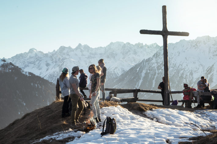 St Christophe är en platå som har en fantastisk utsikt, inte minst när solen börjar gå ner mot bergstopparna. Där finns även ett kapell och ett kors samt några bänkar. Vi gjorde upp en eld och grillade korv med bröd. Kanske inte en bättre måltid än bolognese men ett betydligt bättre äventyr än att sitta hemma vid ett matbord i en bummarlya, det hoppas vi även att vännerna vi bodde hos höll med om.
