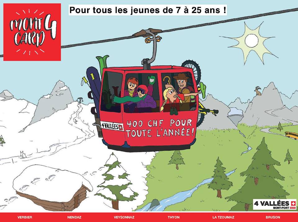 Mont4Card är dealen som förändrar allt ovan och nästan låter för bra för att vara sann. För ynka 400 Schweizerfranc kan alla under 25 års ålder nu plocka hem ett säsongskort för Verbier och hela systemet med de Fyra Dalarna.