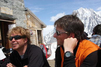 Grand Finale. Väl tillbaka i Chamonix tillbringade vi ett par dagar för att förbereda oss för sista åket på hela resan – från toppen av Mont Blanc. Stället för förberedelserna var Refugio Torino på 3 400 meters höjd på italienska sidan av Mont Blanc-massivet. Höghöjdsacklimatisering, glaciärräddning, klättring med stegjärn med mera var de saker som vi var tvungna att träna på för att vara förberedda för MB. Våra vänner och bergsguider, Mike Wright och Jock Hahne, körde hårt med oss för att vi skulle vara tillräckligt förberedda. Vi fick tyvärr ändra vår plan i sista sekund på grund av en knäskada och starka vindar. Vi bestämmde oss för att inte åka från toppen av Mont Blanc. Bestiga Mont Blanc och åka skidor därifrån är ingen lek och man måste vara 100 procent ok för att göra det. Dessutom var det viktigt för oss att göra någonting tillsammans alla tre denna sista dag, så vi bestämnde oss för att åka Valle Blanche istället. Valle Blance är definitvt inte något dåligt alternativ eftersom det är ett spektakulärt glaciäråk från Aguille du Midi på 3 842 meter.