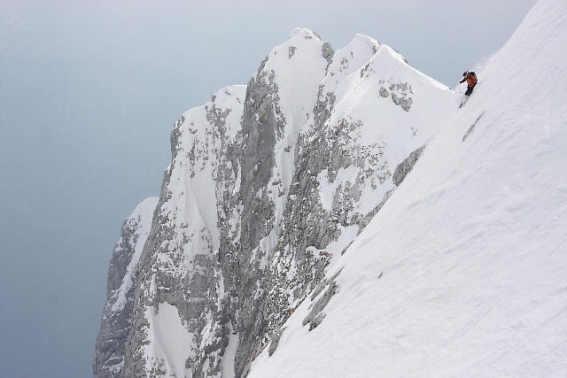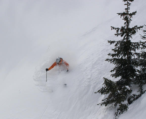 Vi mötte upp med vår bergsguide, Bruno, och goda vän Mattias Erlansson. Det är enormt värdefullt att ha en kille med sig som vet berget utan och innan. Bruno tog oss med på ett par uppvärmningsåk på framsidan av Gampen. När Kapall-liften öppnade var vi de första där. Från Kapall-toppen tog vi bowlen på baksidan ned mot St Jacob. Perfekt lutning och massor med ny snö – magiskt. Efter ett sånt åk så är det inga problem att ta den långa traverseringen tillbaka till St Anton. Bruno drog vidare till Galzig och en bowl på framsidan med djup snö – mer magi. Ytterligre ett åk på Galzig innan det var dags för en snabb gulaschsoppa på Mooserwirt.